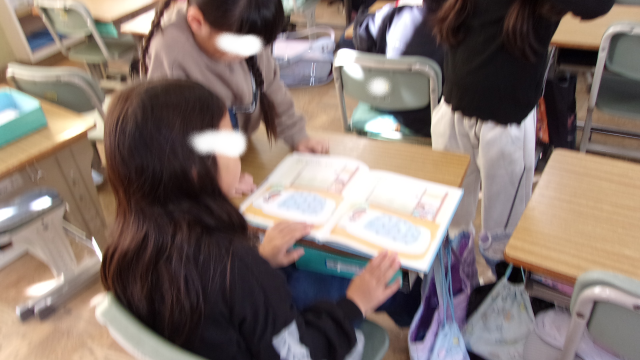 読書タイムの後は、朝のあいさつです。日直さんが前に出て「おはようございます!!」とみんなで挨拶しています。気持ちよく朝のあいさつをして一日がスタートします。日直さんがスピーチをしているクラスもあります...