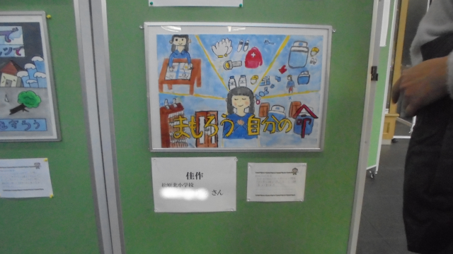 防災図画市長賞の授与式の様子です。澤井市長から賞状を手渡していただきました。とても誇らしくて嬉しかったです。お母さまも一緒に付き添ってくださいました。ありがとうございました。「大切な命を守るための用意...