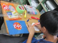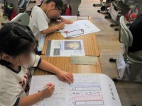 5年生の図工の学習は、模写をしています。お菓子の箱や包み紙をよく見て、色も線も...