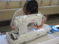 6年生は、家庭科でナップサックを作っています。この時間は、ミシンで縫い合わせをし...