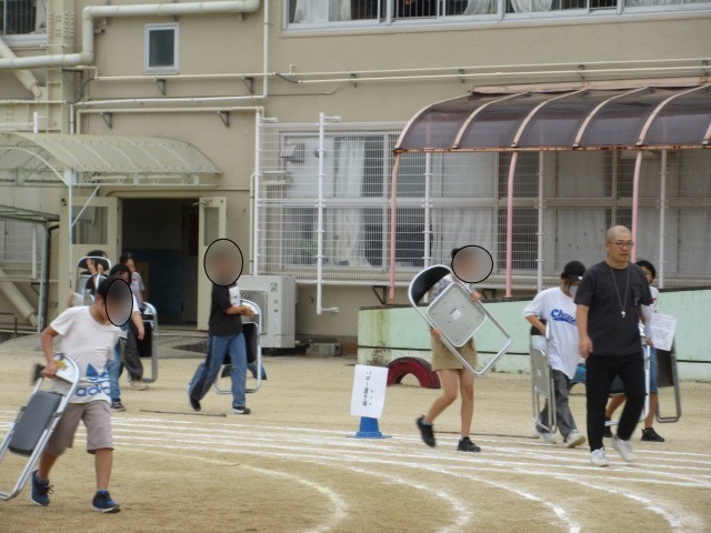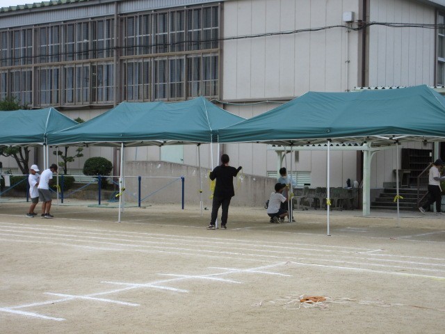下級生が下校した後、運動会に向けて6年生の子ども達が運動会準備をしてくれました。いすを運んだり、テープをつけたり、テントを立てたりと学校のために最後まで頑張ってくれる6年生の子ども達です。