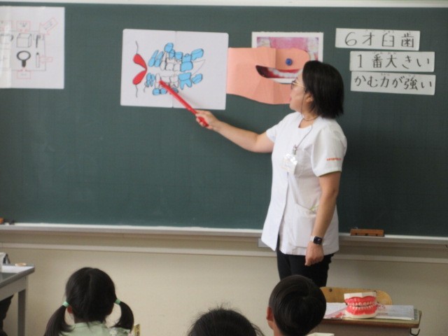 水曜日に歯科衛生士さん、歯医者さんが来てくださり、歯磨きの学習が2年生と5年生でありました。どの部分に歯ブラシをあてて、どう動かすのがよいかなどくわしく、丁寧に教えてくださいました。磨き残しがないかを確かめるそめだしもしてみました。お家でも引き続き、がんばって歯磨きしましょうね。