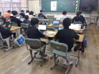 聞き取り学習をしています。被爆者の方からの当時のお話を聞かせて頂きました。当事者の方の思いもしっかり受け止めて学習している子ども達です。