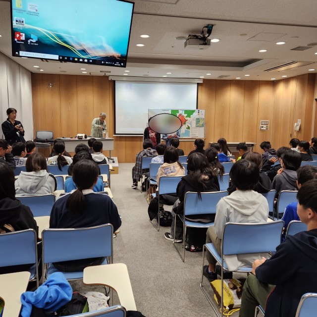 聞き取り学習をしています。被爆者の方からの当時のお話を聞かせて頂きました。当事者の方の思いもしっかり受け止めて学習している子ども達です。