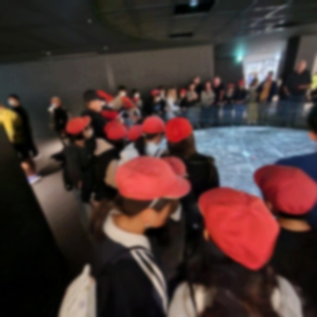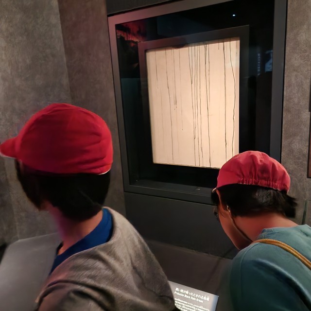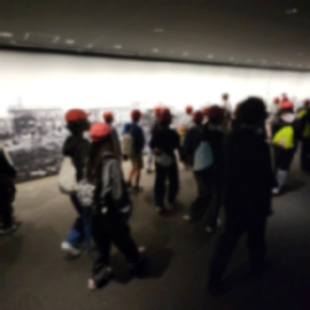 平和資料館に入りました。混んでますがしっかり見学した子ども達です。