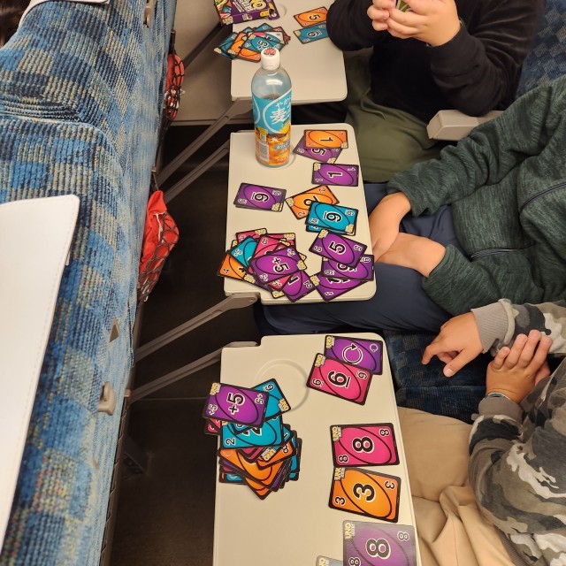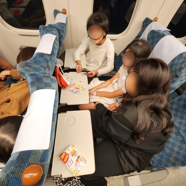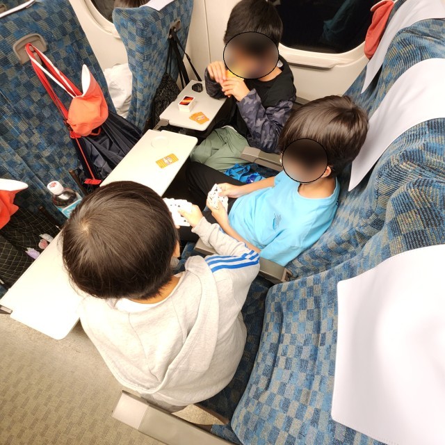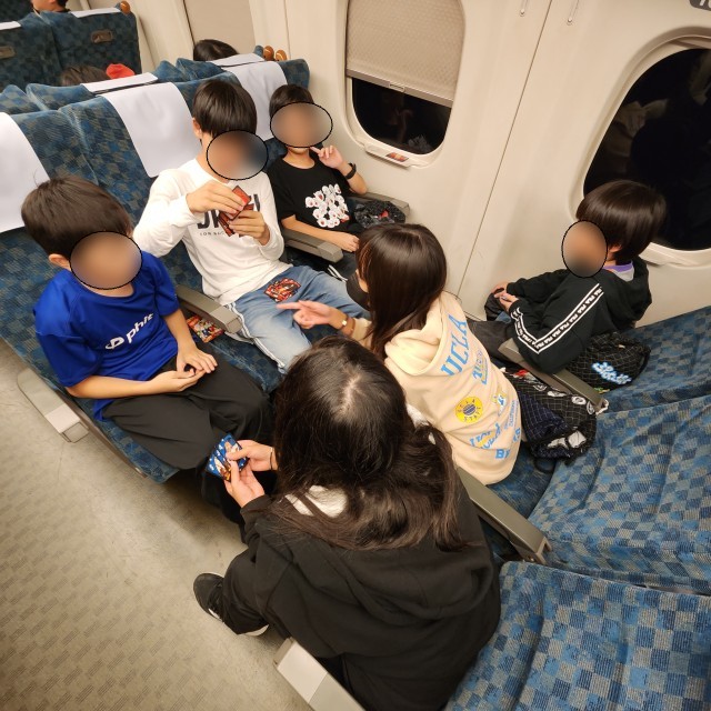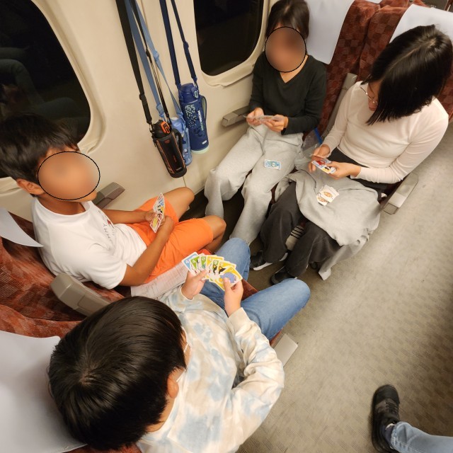 子ども達疲れていると思いますが、車内はカードゲームで盛り上がってます。