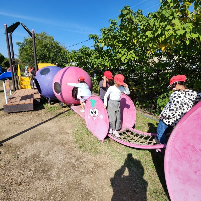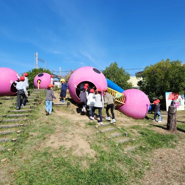 最後は入り口近くの遊具で遊んでいます。元気いっぱい楽しんでいる様子です。