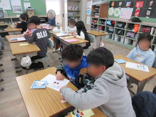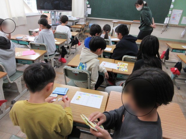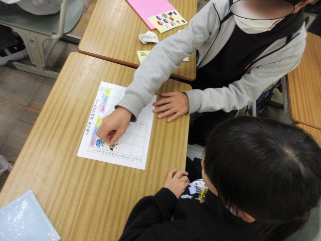 2年生の九九カードの練習を5年生の子ども達が聞いてくれています。5年生は、2年生のために1枚1枚手書きのごほうびシールの準備をしてくれました。5年生の子ども達は優しく聞いてくれている様子でした。