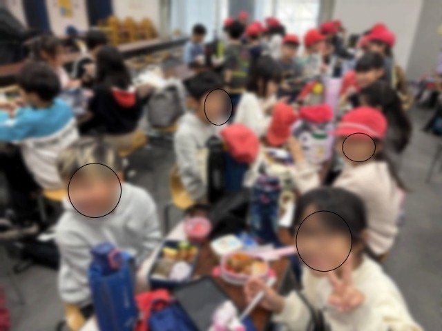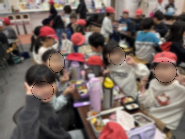 少し早めのお弁当を食べています。外は寒いので室内を予約して食べました。もうお腹が空いているようでモリモリ食べています。保護者の皆様、お弁当の準備有難うございました。