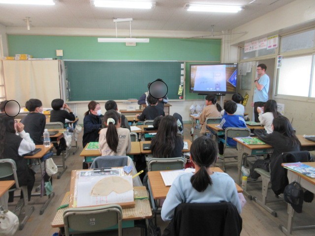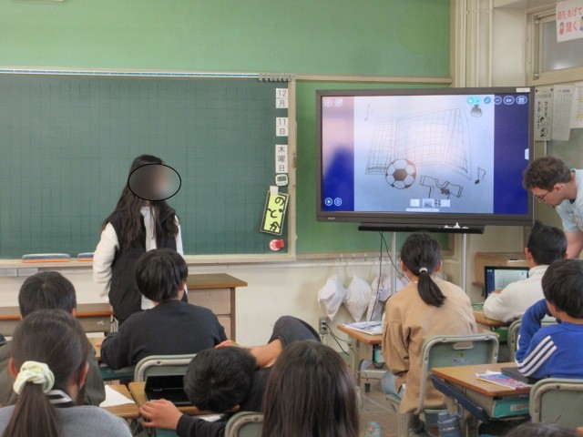 5年生の英語の時間はスピーチの発表をしていました。先生や友だちのことを様々なワードを上手に使って、映像付きで発表していた5年生です。