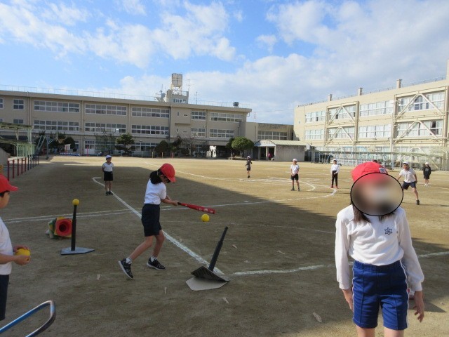 3学期の体育は、ボール運動があります。4年生はTボールをしていました。バットを持ちなれていない子ども達もTボールなら打てる様子でした。