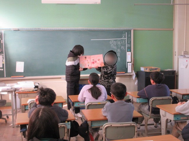 今朝は、図書員会の子ども達が、3,4年生の教室に読み聞かせに行ってくれました。子ども達は、し~んと読み聞かせを聞いている様子でした。