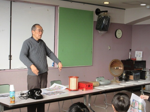 今日は、ふるさとピアプラザの方が来られて、昔のくらしについて3年生の子ども達に出前授業をしてくださいました。実際に昔使っていた電話や湯たんぽなどの道具を見せてもらい、たくさんお話も聞かせて頂きました。