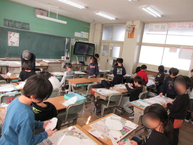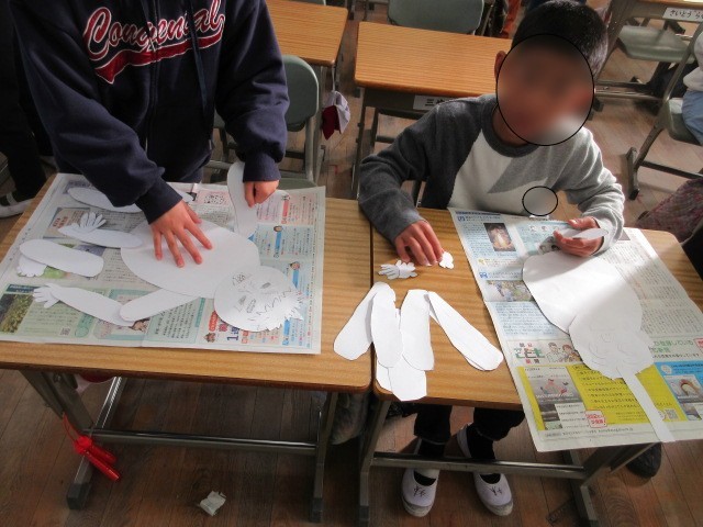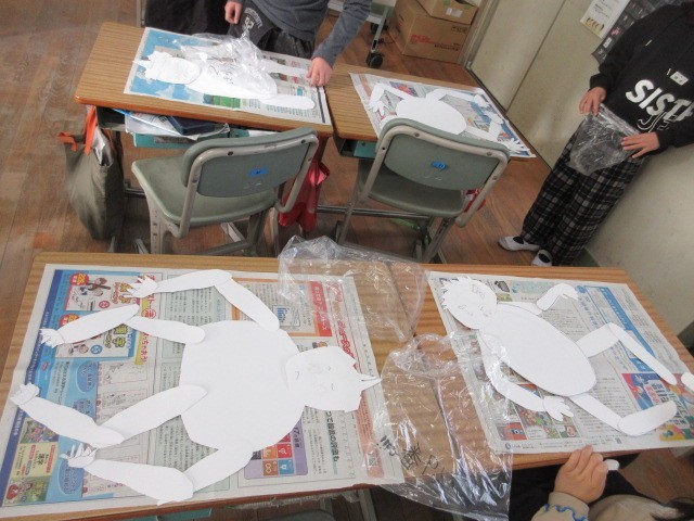 3年生の図工は、紙版画をしています。「じごくのそうべい」のお話にでてくる鬼をイメージして作成していました。