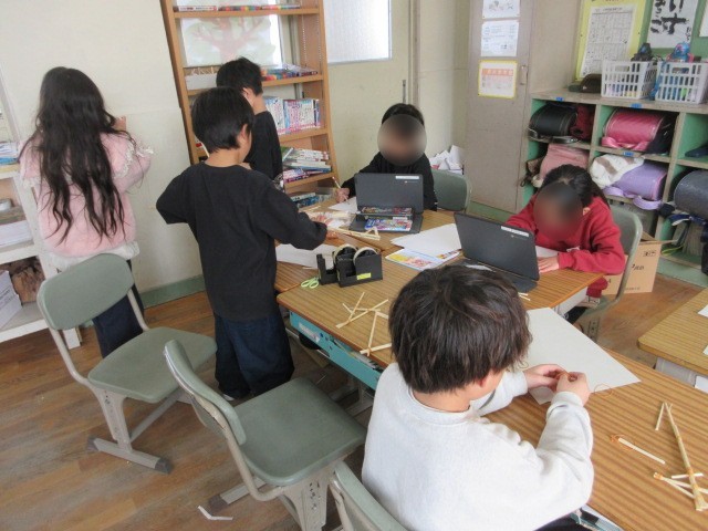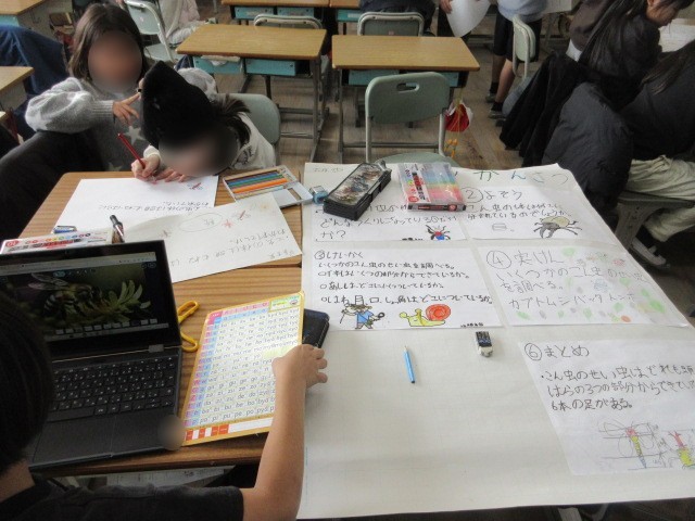 3年生は、1組も2組も理科の時間に参観に向けて発表の準備をしていました。班の友だちと分担、協力しながら作業をしていました。