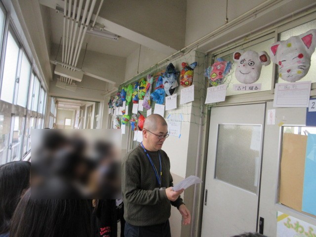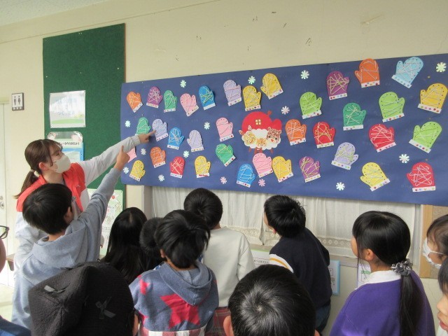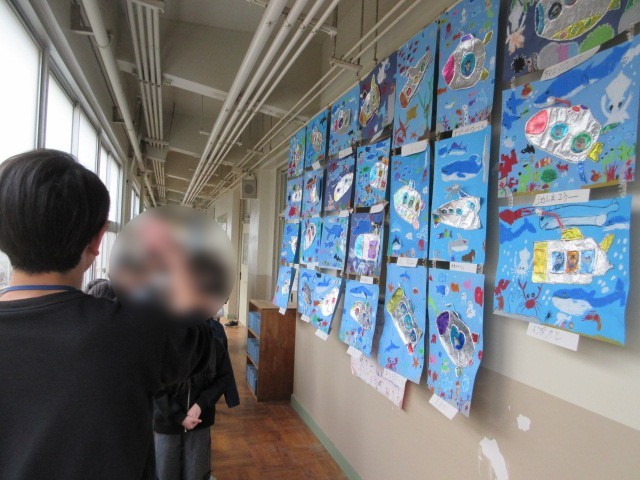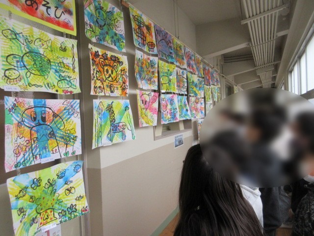 火曜日の1時間目に全校作品展を行いました。廊下に全学年の作品が掲示されています。子ども達は順番に見て回りました。見応えのある作品ばかりです。(1枚目 たんぽぽ学級、2枚目1年 3枚目2年 4枚目3年 5枚目4年 6枚目5年 7枚目6年)