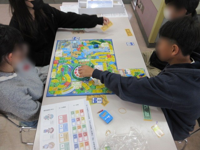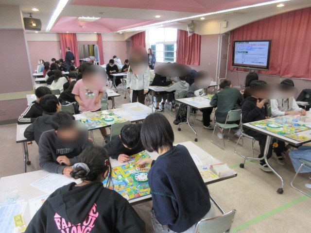 6年生は、SDGsの出前授業がありました。ニッセイの方々が来てくださり、身近な環境についてお話を聞いた後、SDGs版の人生ゲームを各班ごとで行いました。ゲームを通して楽しく環境問題を考える学習が出来ました。