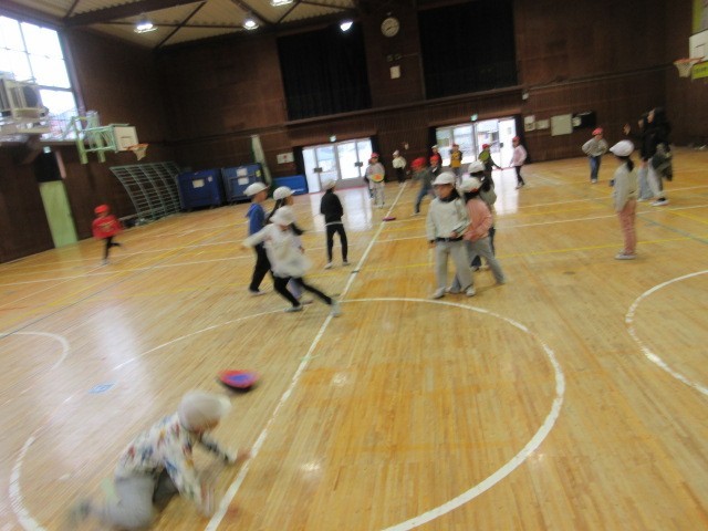 昨日に続いて、今日も環境委員会の子ども達の呼びかけで1年生が朝から体育館に集まっていました。ドッジビーに大喜びの1年生でした。