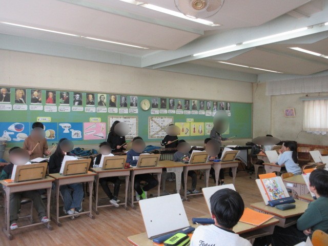 4年生は、合奏にチャレンジ中です。「魔法のすず」という曲でリコーダー演奏に加えて木琴,鉄琴を演奏する人もいました。メロディーに打楽器の音が重なると更に聞きごたえがある音楽になります。