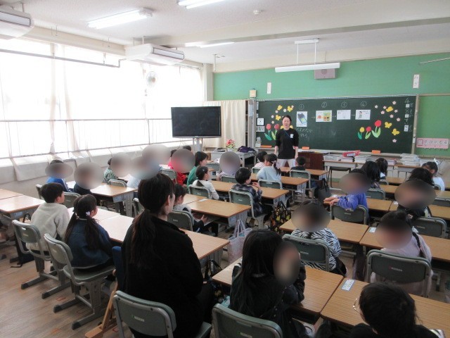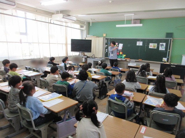 1年生は、ちゃんと先生のお話を聞いてがんばっています。この日は、配られたお手紙を連絡袋に入れる勉強をしていました。チャックをあけてお手紙いれることも一つひとつ学習している1年生です。