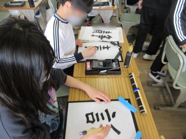 6年生は、習字の時間に、今年頑張ることを文字にして書いていました。一人ひとりの思いが感じられた習字の学習でした。