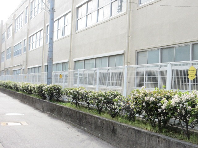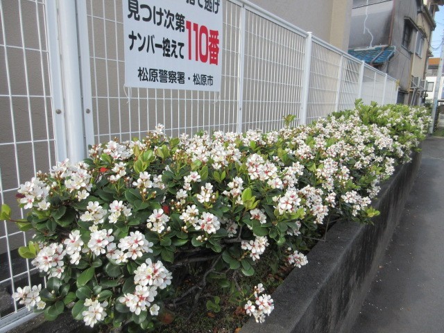 学校北側には、シャリンバイの花が満開になってきました。子ども達の登下校を華やかに見守ってくれています。