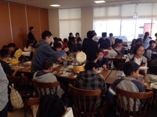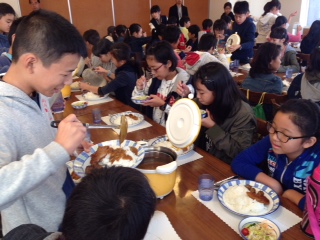 宮島口で、昼食です。大きなジャーから、自分たちでよそう、カレーです。