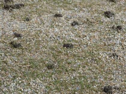 11月9日(水)いつもどおり朝の挨拶に立っていると、何人かの子どもが、芝生の指先ほどの盛り上がりを、「校長先生、あれ何?」と聞いてきました。「確か、雨上がり、ミミズが出てきたんだと思う」と答えましたが、気になったのでいろいろと調べました。やはり、雨で、地中が酸素不足になったミミズが、地中から出てきたときにできた「塚」、「ミミズ塚」だそうです。その後、小鳥が芝生に降りてきてたので、おそらくえさのミミズをあさっていたのでしょう。