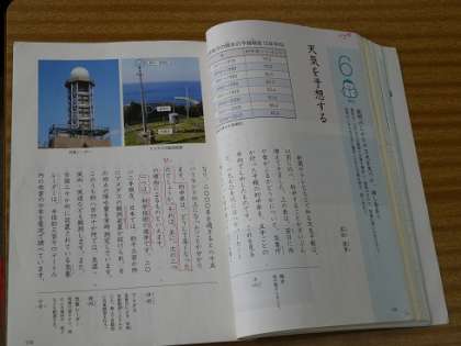 5年生は、国語の説明文で「天気を予報する」を学習しています。教材の中に、たくさんのグラフ・表・地図・写真を効果的に使って、どのように天気を予報するかを展開しています。先日の全国学力実施状況調査でも解説したPISA型の、今の子どもたちに問われている学習です。