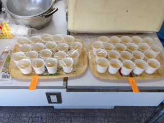 本当の味、味覚を育てるため、鰹からとった一番出汁と市販出汁の飲み比べをします。