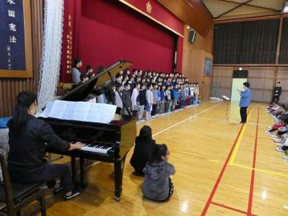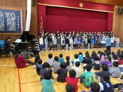 11月16日(水)8時30分より、体育館において、松原市小学校連合音楽会で発表する5年生の校内発表会を行いました。リコーダー演奏 アメイジング グレイス、合唱 美しく青きドナウ を全校生と保護者の前で発表してもらいました。素晴らしい演奏、素晴らしい合唱でした。