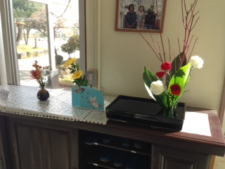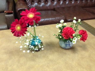 11月16日(水)牧嶋さん、岡島さんに季節感のある花を生けていただきました。鮮やかな赤や黄色の花が多く、寒い日和の中で、視覚からぬくもる効果も感じます。今日も、ありがとうございます。