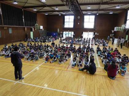 その後、校長の講話を行いました。今、学校全体で取り組んでいる、完食運動。「完食している人?」と尋ねると、多くの子が手を上げてくれました。そして、前回の講話でお話しした食事について、私が継続している、感謝して食べること、よくかんで食べること、できるだけTVを観ないで食べることについて話しました。最後に、好き嫌いなく食べると、良いことがあるという思い出話を紹介しました。「梅干し食べると、いいことあるの?」と聞いてみてください。(^_^)