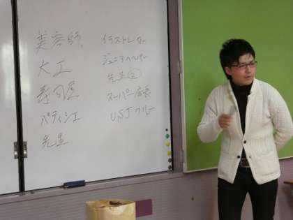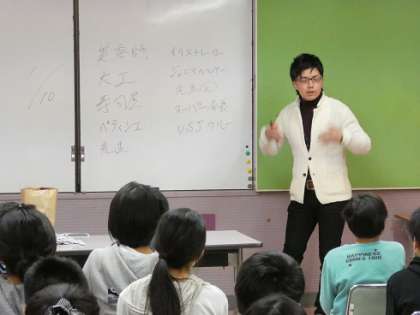 来週、卒業式を控え、中学へ旅立つ6年生。これまで出会ってきた様々な方との出会い、聞き取りをしています。今日は、3年生の時にお世話になった、学生ボランティアの井口さんから聞き取りをしました。現在、新聞の営業マン。3年連続新規契約一番で、会社の賞をもらったそうです。お話は、自らの深い生い立ち、子どもへの夢を実現するアドバイスなど、いろんな話をしていただきました。「吐く」と「叶う」という、これからの生きる指針のヒントをいただきました。