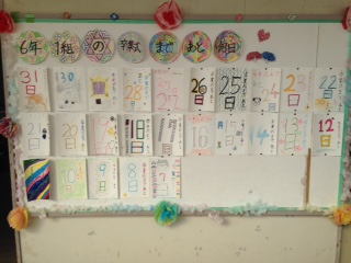来週、16日に控えた卒業式まで、あと、学校に来る日が7日となりました。6年生は、16日の卒業式から逆算して、カウントダウンの日めくりカレンダーをみんなで分担してつくっています。