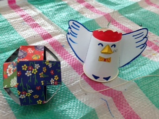 開始1時間前より、推進委員会の皆様、PTAの皆様、そして、子どもたちも協力してくれて、準備ができました。下の写真は、出来上がりの作品見本です。