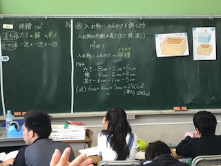 なぜ、「3」が、つくの?とは、授業中の子どもの発言。立方センチメートルの3の意味を、自分の言葉で説明していました。