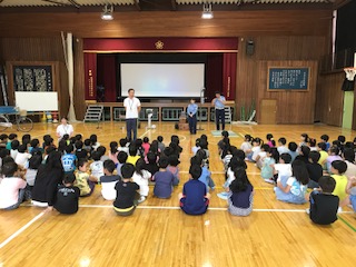 松原警察、松原市役所から、学校に来ていただき、交通安全教室を開きます。