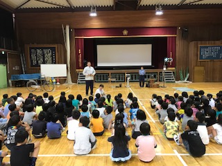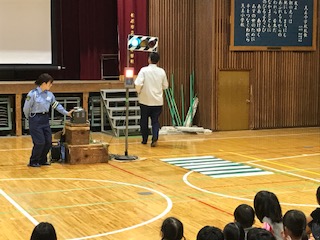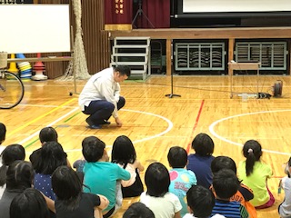 お巡りさんが、悪いお手本をやって、「どこが間違っているか」見つける寸劇をやってもらいました。