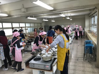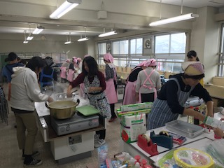 朝から、食生活改善委員の皆さん、なかよしクラブ委員さん、PTA、教職員で準備を始めています。