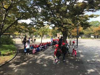 10月24日 長居公園に着きました 1年生