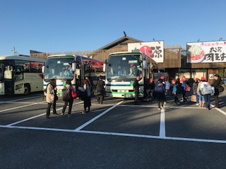 予定より少し早く、丸源ラーメン駐車場を出発しました。天美西小学校も同時に出発でした。行き帰りの新幹線も一緒です。