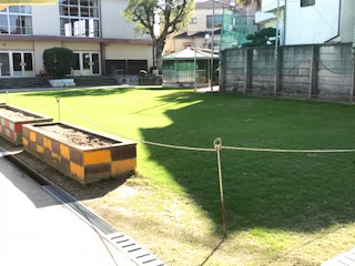 秋晴れの空に、校舎のクリーム色が鮮やかです。湿度も低くとても良い日和です。