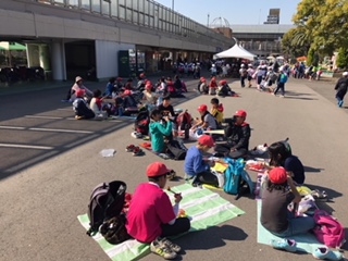 気持ち良い秋晴れの空のもと、お弁当を広げています。