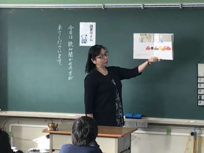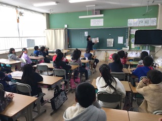 今日の読み聞かせは、4年生。外は肌寒いですが、教室はお日様が差し込んで、温もっています。暖かい教室で、心地よい時間が流れます。