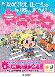 4月6日(金)〜15日(日)まで、春の全国交通安全運動です。