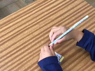 鉛筆の歌に合わせて、鉛筆を持つ練習をしました。