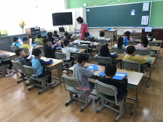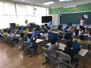 お手紙を青のファイルに挟みました。きちんと挟んでいるか、開いた先生にファイルを先生に向けました。