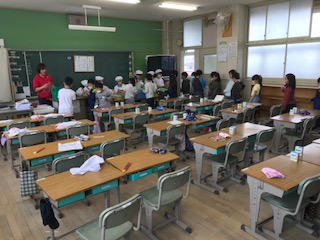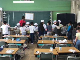 3年生から、自分たちで、食缶を持って上がります。