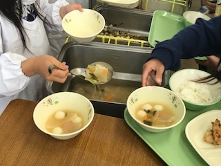 4月11日 今年、初めての給食 3年生